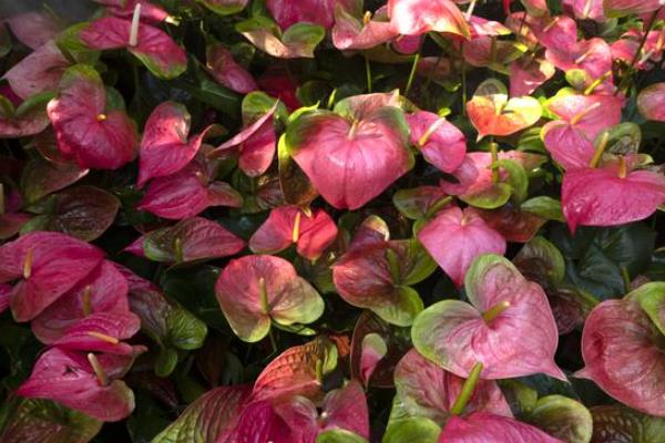 (1)日常养护红掌时,需将环境温度控制在18-28℃之间,确保温度的适宜,能促进红掌的生长发育。