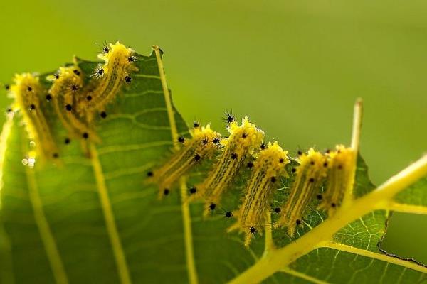 洋辣子是一种杂食性害虫,主要以白蜡、刺槐、杨树、柳树、紫荆、梧桐等园林植物的枝叶和表皮为食,而且采食后植物叶片上会出现不规则的黄色斑块,严重影响植物的健康生长。