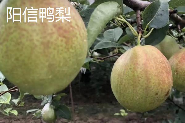 产于山东省阳信县。外形美观,色泽金黄,呈倒卵形,因梨梗基部突起状似鸭头而得名。皮薄核小,香味浓郁,清脆爽口,素有“天生甘露”之称。阳信县栽培鸭梨历史悠久,现有梨园20万亩,被誉为“鸭梨之乡”。