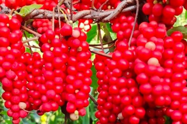 五味子很特殊它有五味,所以叫五味子,在秋天成熟后晒干泡水。