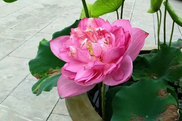 花期养护:荷花可以养在阳台上,让它充分晒光。平时主施磷钾肥,辅施氮肥,土壤要保持湿润。